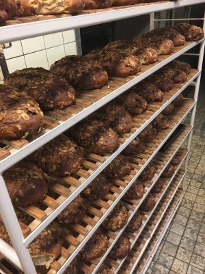Onze stol bestaat uit luxe tarwebloem, rozijnen, gekonfijte vruchtjes en “echte” amandelspijs. Dit verklaart ook meteen de prijs van € 8,95. Al onze ingrediënten zijn van goede kwaliteit en hierdoor is de Paasstol zeer smakelijk. Deze week bakken we elke dag verse stollen. Als advies geven wij mee, vries ze vooral niet in. Bewaar de stol op een donkere plek en geniet er gewoon van. Ons pap snijdt er altijd een plak af, haalt de spijs eruit en smeert deze uit samen met flink wat roomboter. Hij hoort dan ook bij de groep mensen die het hele jaar door de stol kan eten. Hij bewaart er altijd een paar in een keukenkastje zodat hij de komende weken vooruit kan. En wij in mei nog steeds een stukje stol krijgen. (Welke hij overigens niet graag afgeeft.)