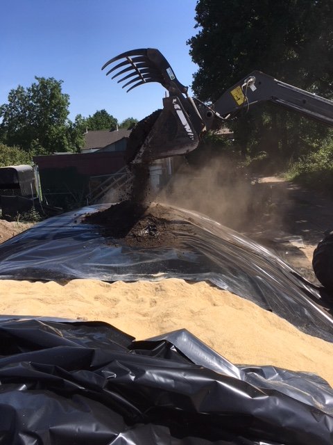Je hebt ze vast wel eens zien liggen? Die langgerekte hopen met zand of autobanden erop, bij een boerderij op het erf. Meestal zeggen gasten dan meteen “ja”. Tijdens een excursie vertellen we dat het kuilhopen zijn, opslag met voer voor de geiten. We hebben er verschillende met gras en maïs en afgelopen week een nieuwe met graan. Een flinke kuil met wel 100 ton graan (demeter kwaliteit). We oogsten dit zelf, het was 20 hectare, veel werk, maar nu ligt het aan huis, met plastic erover en zand daarop, dus ingekuild. Zo blijft het houdbaar. Het land wordt nu met mest weer in gereedheid gebracht, er wordt gras gezaaid. De pakken stro zijn nu ook geperst en worden naar de boerderij gebracht. Door de biologisch dynamische werkwijze is er veel diepgang in het bedrijfsproces. Er is véél meer te zien dan alleen het melken van de geiten en het bereiden van de kazen. Dat maakt het ook zo interessant om een bezoek aan ons te brengen. We geven regelmatig excursies voor familie-uitjes, kinderen vinden het altijd geweldig om op de boerderij te zijn. Er worden meestal veel vragen gesteld want er is ook zoveel te zien! “Waarom heeft die geit wel horens en die niet?” “Waarom heeft die geit een blauw puntje?” “Waar gaat de kaas naartoe?” En waarom de Heezer geitenkaas zo speciaal is, nou dat komt omdat het echt een puur product is, veel van de natuur en een stukje ervaring van onszelf. Basisscholen, voortgezet onderwijs en hoge scholen leiden wij regelmatig rond. Afgelopen week hadden we een teamuitje van de financiële afdeling van Kempenheaghe en er waren ook 3 mannen helemaal uit Rusland op excursie. Als leerbedrijf zetten we ons ook veelvuldig in, studenten uit Nederland, Duitsland en Frankrijk komen jaarlijks bij ons hun stages doen. Zij volgen allerlei opleidingen zoals dierenverzorging, paraveterinair, voedingsmiddelentechnologie, welzijn en milieu en nog diverse andere studies aan de HAS Den Bosch. Bij Saanenhof worden rondleidingen gegeven vanaf 5 euro p.p.